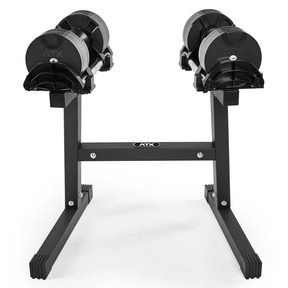 The ATX Adjustable Dumbbell stand is a floor stand for the adjustable dumbbells 2-20kg and 2-32kg. The frame is made out of metal and in the classic design. The stand offers a convenient way to pick up and put down the dumbbells.