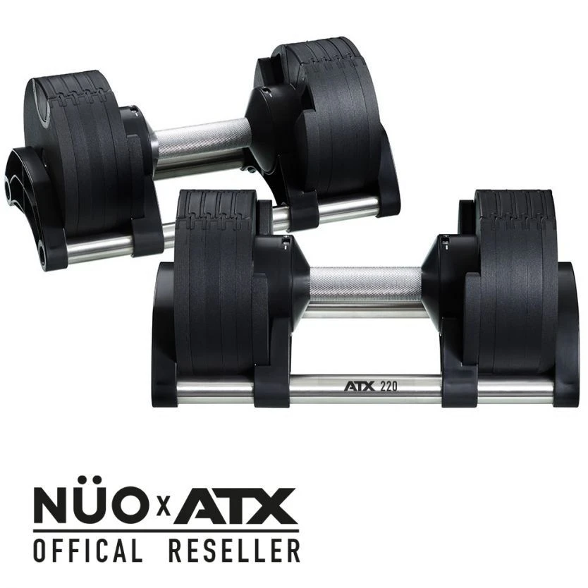 The ATX Adjustable dumbbell combines dumbbell weights from 2 to 20 kg in an extremely quickly changeable dumbbell system. The dumbbell system impresses with its extremely fast and safe handling and extremely compact dimensions.