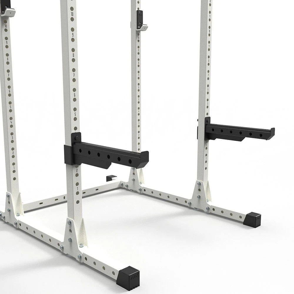 Front safety booms to fit the 600-series series of ATX racks. The tray/ catchment area is 50cm long, giving a decent depth safety. The flip-down safeties can be used inside or outside of the rack and can also be utilised alongside the jammer arms, as a rest/ stopper.