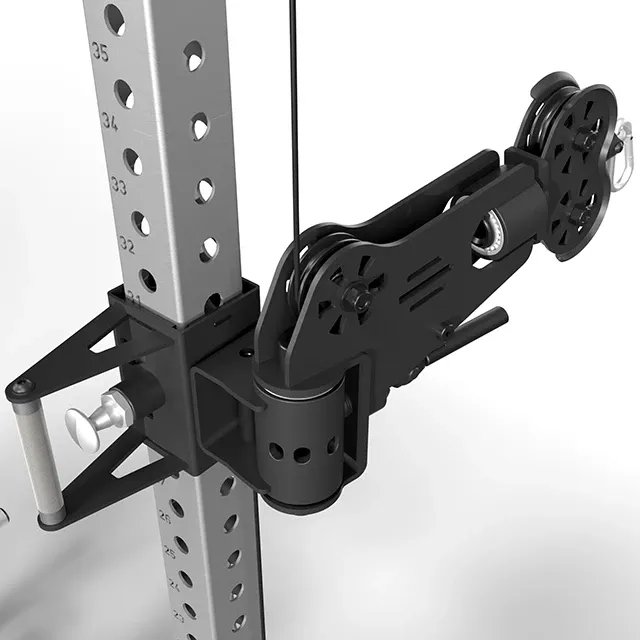 + pivoting – for extra wide pulling distances (Cable-Cross) - 8-way weight plate rack – Ø 50 mm, individually adjustable in height